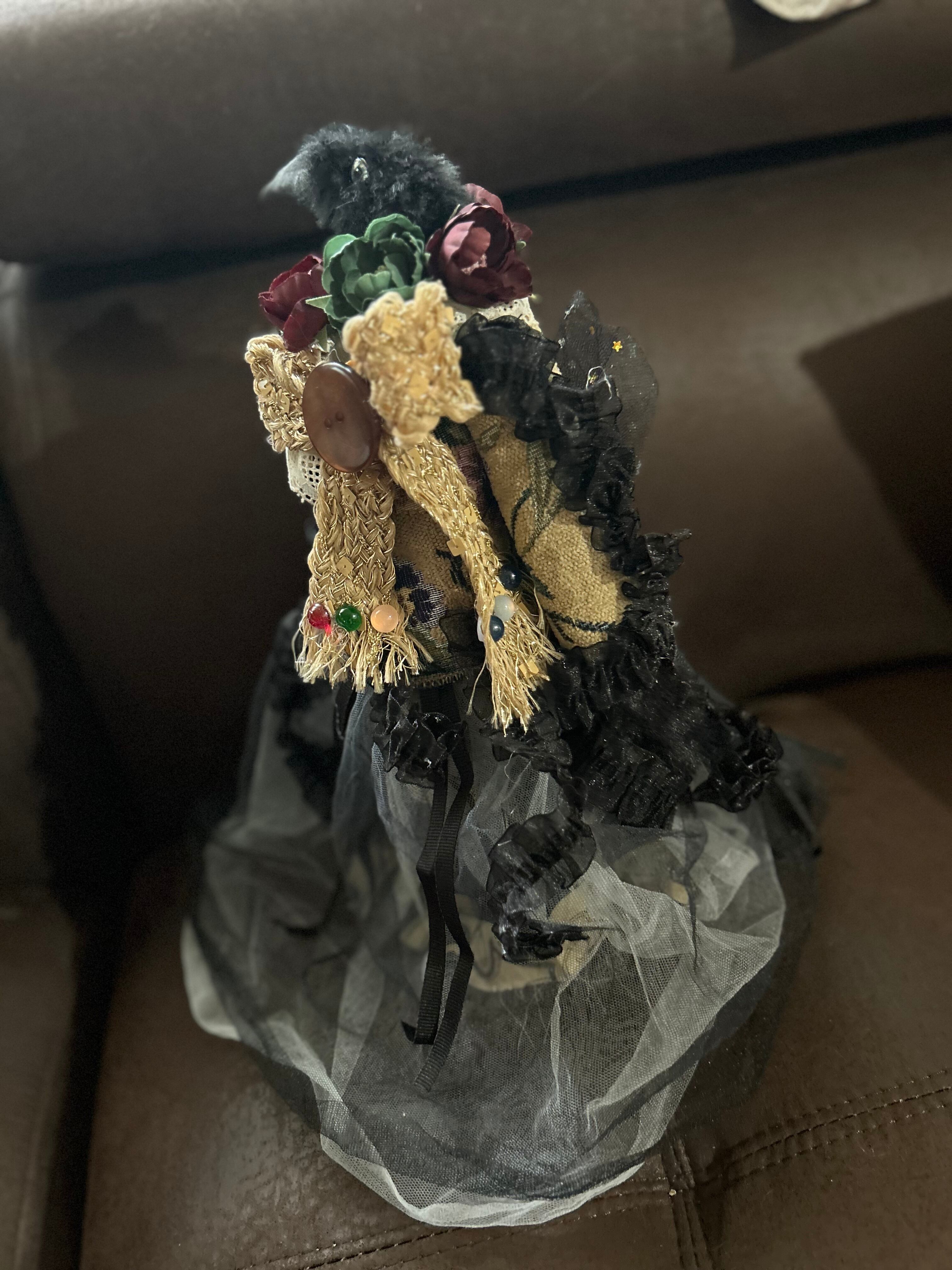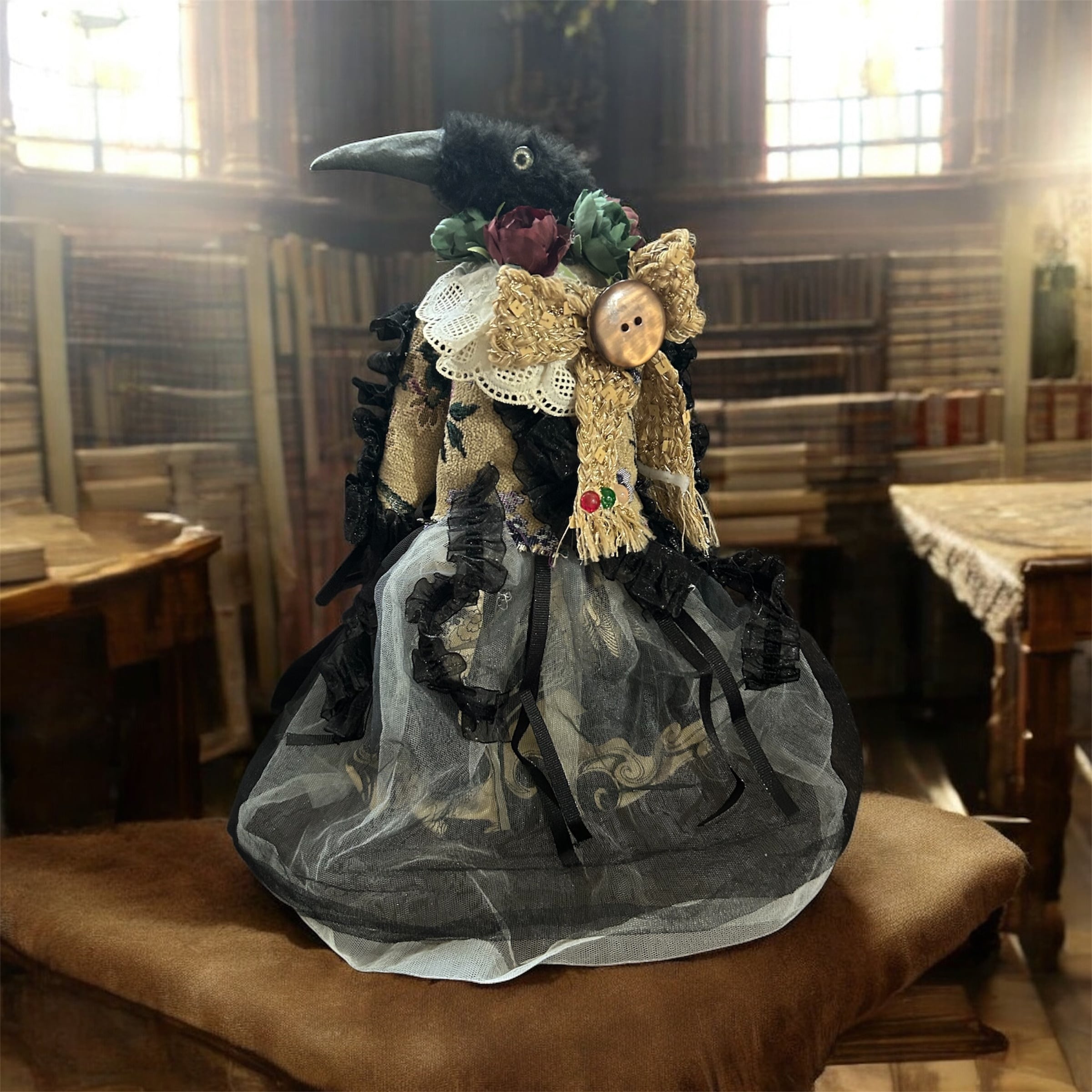 孤独と未来をテーマにした神秘的なカラスドール。アンティークな風合いを纏ったデザインが魅力です。このカラスドールは、時を超えた存在感を持ち、あなたの空間を一層特別なものにしてくれます。見るたびに新たな発見があり、心を惹きつけられることでしょう。